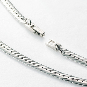 ボックス型の金具をアズキチェーンのように連ねたチェーンで、一面一面が平たいため、
