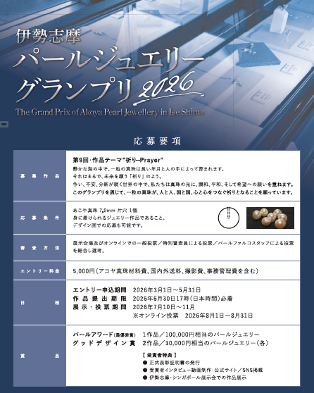 第9回 伊勢志摩パールジュエリーグランプリ2026のエントリーを開始しました。