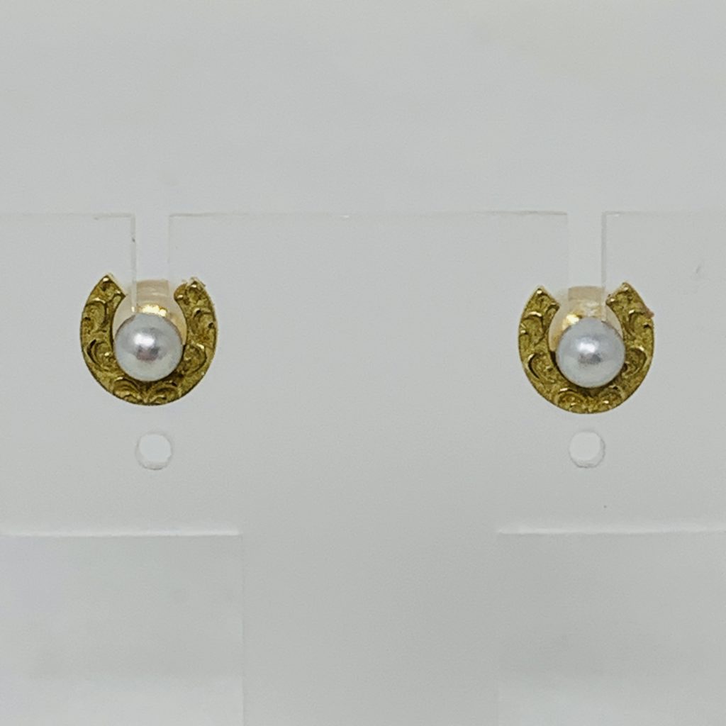 優雅な煌めきを放つ馬蹄の真珠ピアスは、