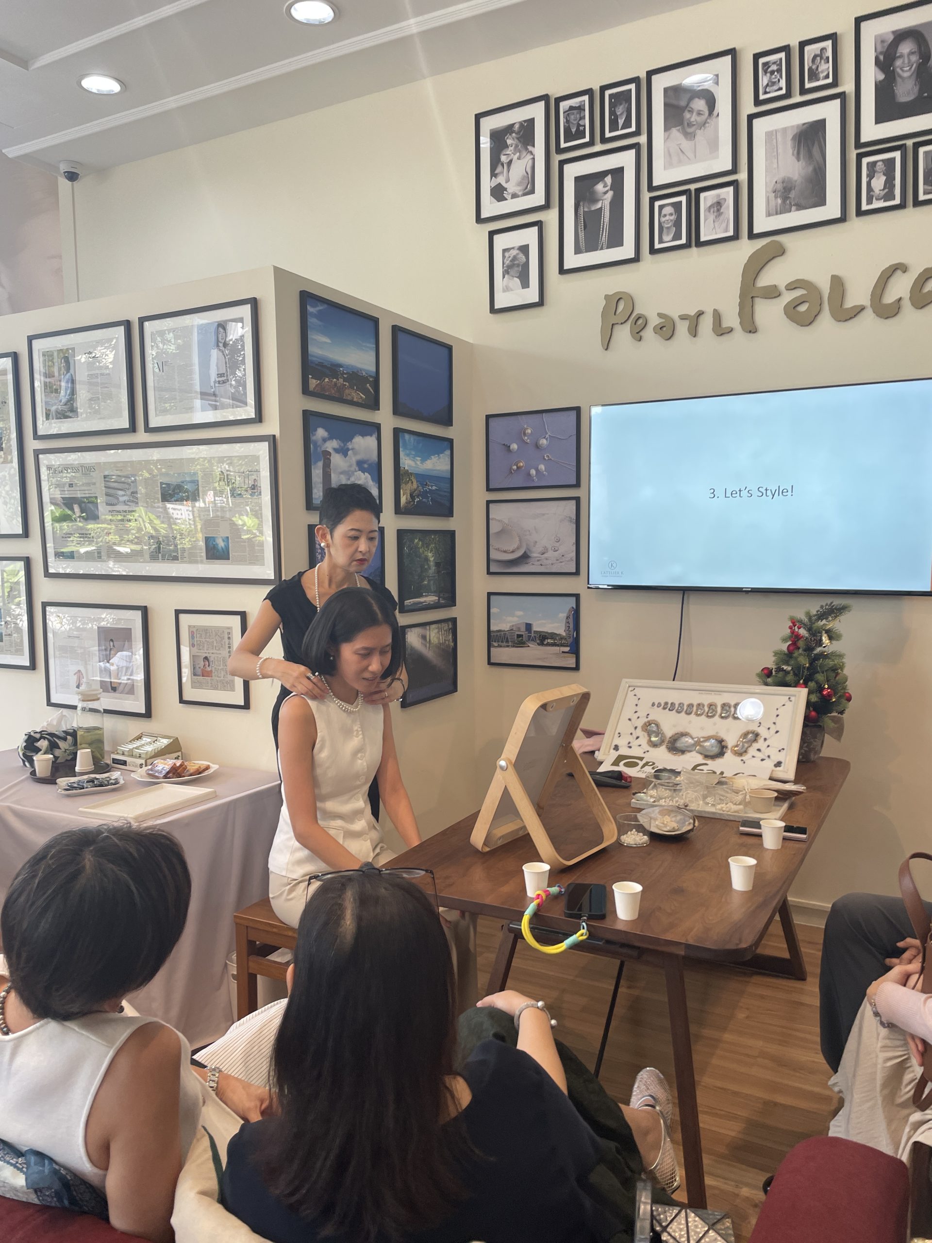 Kanako shared tips on selecting flattering colours, balancing outfit proportions, choosing the right accessories, and creating polished looks with minimal changes. Through live demonstrations and hands-on examples, she showed how seawater pearls—introduced earlier by Maiko—can be incorporated effortlessly to elevate both corporate and evening outfits.