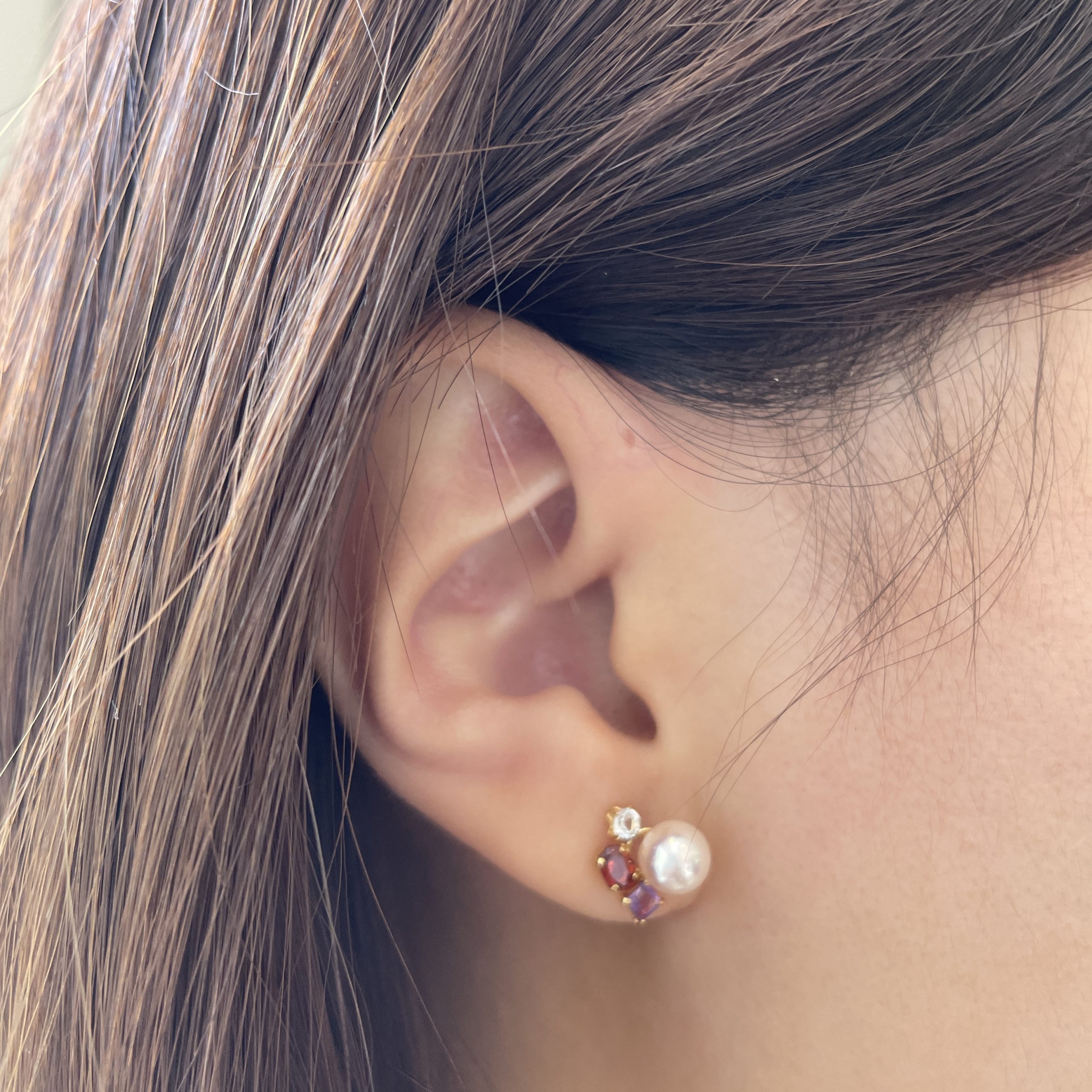 Akoya Topaz / Garnet /Amethyst earring – E298